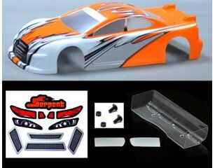 Body 190mm Lex-IS EFRA 4030, prepainted, pre-cut orange /white. Fits 411 cars perfectly. Made from top-quality 0.8mm lexan, lightweight but very stabile too. Clear version. On asphalt the the body creates a very neutral and easy handling, but can be raced aggressively as it offers lots of traction and steering. On carpet the steering response is more direct exactly as wanted on carpet. The body comes complete with head-tail-light / grill sheet.