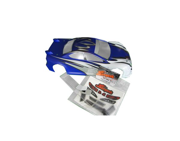Body 190mm Lex-IS EFRA 4030, prepainted, pre-cut red /white. Fits 411 cars perfectly. Made from top-quality 0.8mm lexan, lightweight but very stabile too. Clear version. On asphalt the the body creates a very neutral and easy handling, but can be raced aggressively as it offers lots of traction and steering. On carpet the steering response is more direct exactly as wanted on carpet. The body comes complete with head-tail-light / grill sheet.
