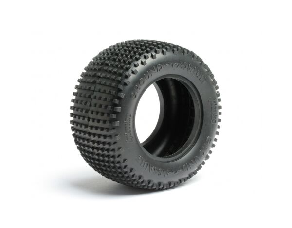 The Ground Assault Tyre in S Compound is the perfect addition to any racer's tyre box - featuring a modern tread design for racing on hard-packed dusty surfaces and a sticky yet durable compound, these are the best addition you can make to your 2WD stadium racing truck! These will fit any standard 2.2 inch wheels, making them compatibile with nearly every truck available!