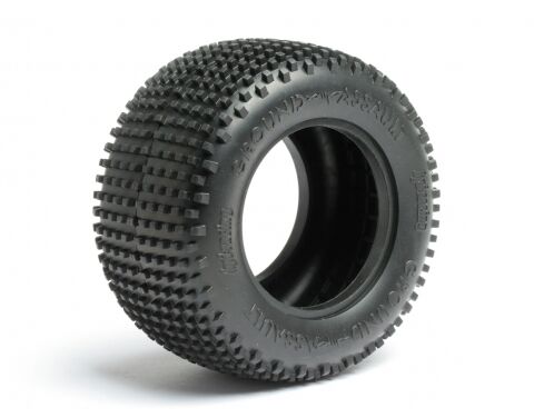 The Ground Assault Tyre in S Compound is the perfect addition to any racer's tyre box - featuring a modern tread design for racing on hard-packed dusty surfaces and a sticky yet durable compound, these are the best addition you can make to your 2WD stadium racing truck! These will fit any standard 2.2 inch wheels, making them compatibile with nearly every truck available!