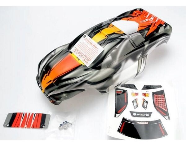 4411R Traxxas Body Nitro Rustler ProGraphix (Replacement the painted Body. Graphics are painted paint final color application.)window grill lights decal sheet wing and Alu Hardware