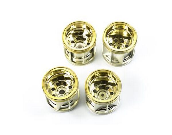These are gold plated wheels designed to fit the WR-02 (wheelie) chassis, such as the Wild Willy II and Volkswagen Type 2 Wheelie.