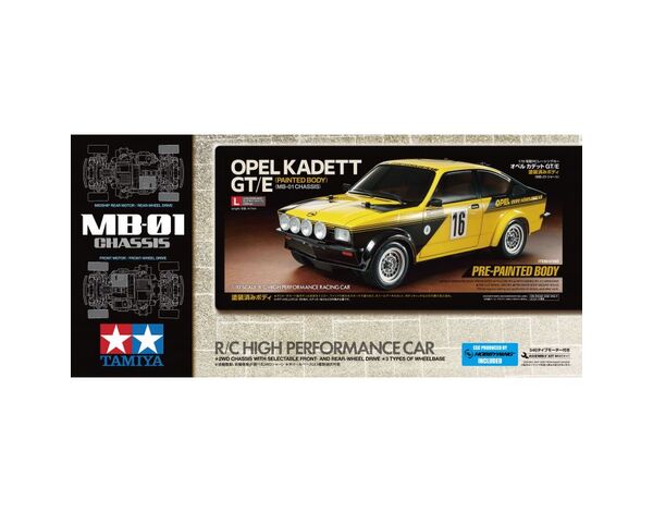 TAMIYA präsentiert den Opel Kadett GT/E auf dem MB-01 Chassis.