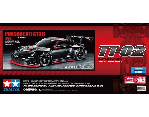 Dieser ferngesteuerte Modellbausatz bildet den Porsche 911 GT3 R (992) mit einer atemberaubenden und hochdetaillierten Karosserie aus Polycarbonat nach. Der Bausatz basiert auf dem anfängerfreundlichen und hochgradig anpassbaren TT-02-Chassis, das Hobbyisten die Möglichkeit bietet, sich mit zunehmender Fahr- und Konstruktionserfahrung weiterzuentwickeln.