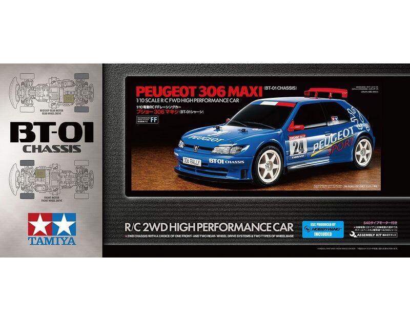 47513 Tamiya 1/10 RC Peugeot 306 Maxi (BT01) Rally Baukasten inkl. Motor und Fahrtenregler