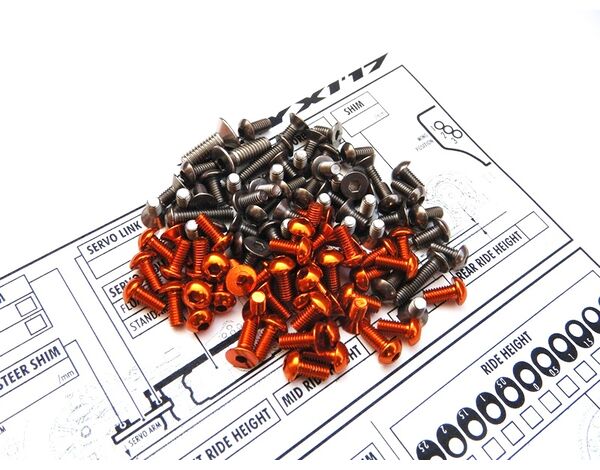 Weniger Beanspruchte Schrauben sind aus 7075 Alu in Orange.