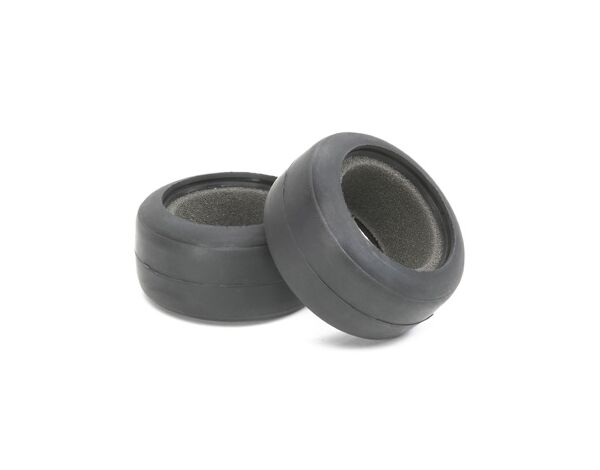 These are the kit supplied replacement front rubber tires for the F104 chassis. They come belted and work best in track temperatures exceeding 95 degrees. As track temperatures drop below 95 degrees grip levels drop accordingly.