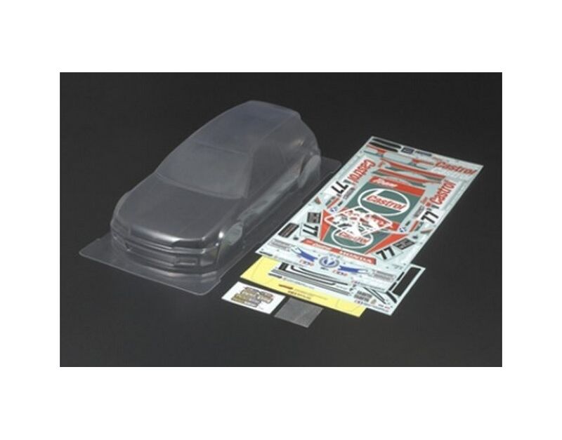 - Set includes clear polycarbonate body, side mirrors, sticker sheet, and window masks