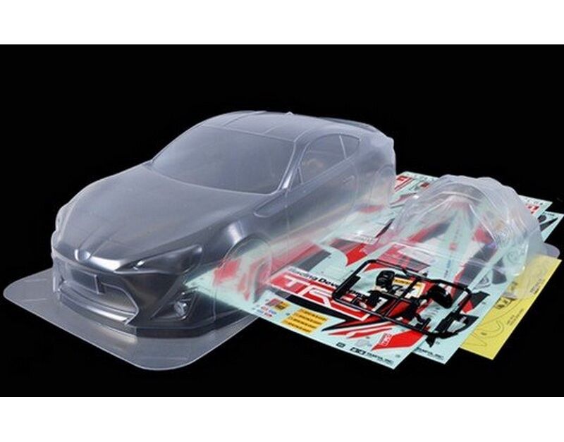 This is a clear polycarbonate body parts set of the GAZOO Racing TRD 86 race car. It is made out of 1mm thick polycarbonate. The set includes masking seals for the windows and a sticker set to replicate the Gazoo Racing Team livery.