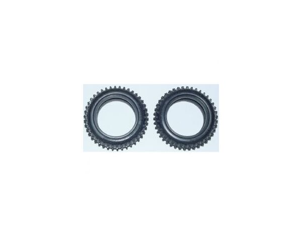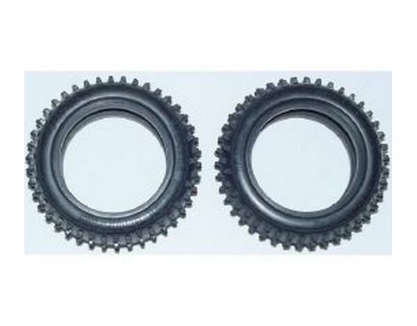 These are square pin-spike tires for Tamiya 4WD buggies. This set of 2 is designed for the front of Tamiya 4WD buggies with compatible wheels.