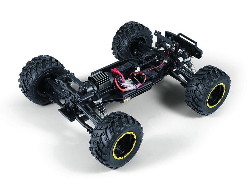 Mit seinem Allradantrieb, der unabhängigen Doppelquerlenkeraufhängung, den einstellbaren Gewindefahrwerken und den 4-Gang-Differentialen vorne und hinten klettert der Smyter über alle Arten von Gelände, sowohl drinnen als auch draußen, und sorgt für jede Menge Fahrspaß, wo auch immer du ihn hinstellst! Und mit der schützenden Getriebeabdeckung, dem im Servohorn integrierten Servo-Saver und der spritzwassergeschützten Elektronik brauchen Sie sich keine Sorgen zu machen, dass Pfützen oder Unrat Ihnen im Weg stehen!
