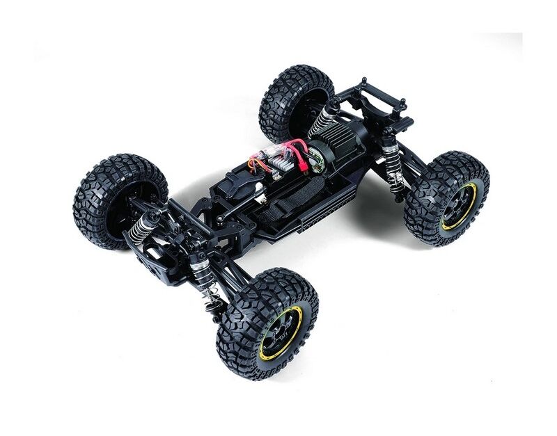 Mit ihrem 4WD-Antriebsstrang, der unabhängigen Doppelquerlenkeraufhängung, den einstellbaren Gewindefahrwerken und den 4-Gang-Differenzialen vorne und hinten klettert der Smyter über jedes Gelände, egal ob drinnen oder draussen, und bietet Ihnen uneingeschränkten Spass, wo immer Sie fahren möchten! Dank seiner Schutzabdeckung, dem im Servohorn integrierten Servosaver und der spritzwassergeschützten Elektronik müssen Sie sich keine Sorgen um Pfützen oder Schmutz auf Ihrem Weg machen!