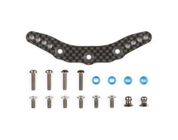 This new 3.0mm TB-03 carbon damper stay (Front) helps improve rigidity and has multiple possible settings allowing you to further personalize and customize your machine.