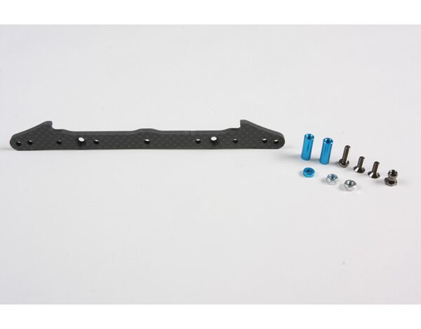 3.0mm thick Carbon Rear Body Mount Plate Set replaces the kit-standard components on the RM-01 1/12 scale chassis.