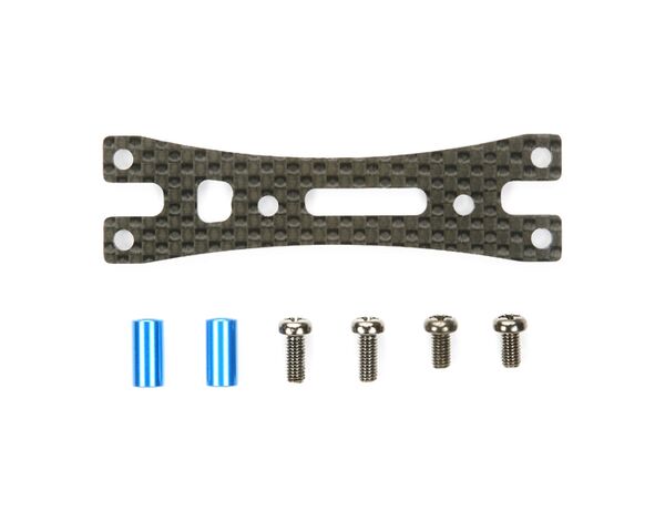 This 2.5mm thick carbon plate replaces the kit-standard plastic part to increase the overall rigidity of the motor mount.