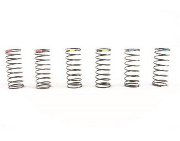 These option part springs are available to further upgrade items 54504/54505 Buggy Big Bore Aeration Dampers. 3 varieties of hardness are included to allow racers to tailor their car’s suspension to the unique challenges of each course.