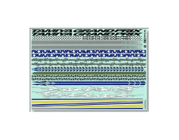 Make your touring car model look even more stylish by adding some decoration to the body. This sticker set includes stripe marking stickers which add a speedy look when applied to the bonnet of the car. It also features designs which can be applied to the side of the car to give the model a customized look.