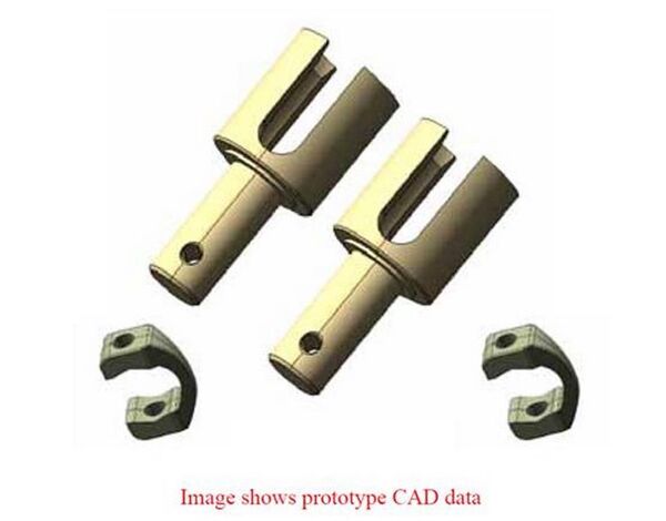 This cup joint set is made of aluminum and it's made to be used with the TA-06 gear differential unit. The standard cup joints are made of steel. The new aluminum cup joints also feature drive shaft pin protectors, also known as "blades" so the wear and tear to the cup joint is prolonged.