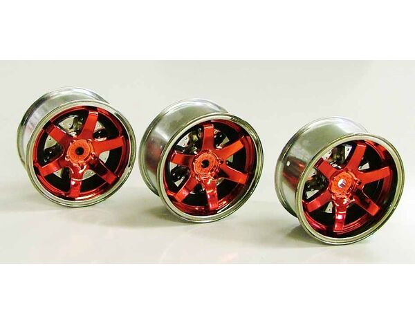 54553 Tamiya Red Plated 2-Piece 6-Spoke Wheels (26mm, Offset 6)