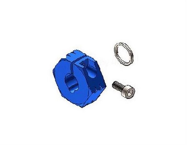 Stylischer Mitnehmer in blauem Aluminium-zur Befestigung von 12-kant 4WD-Buggyfelgen.