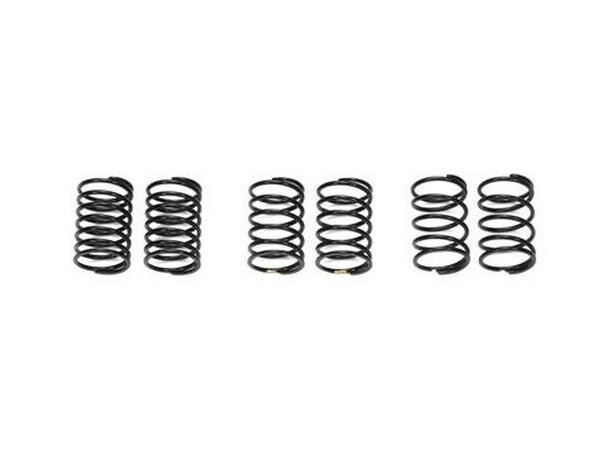 Different spring stiffnesses make a big difference to handling in any of Tamiya’s 1/10 touring cars. This short set compliments the existing line-up of springs with three new spring rates. Use them to get your car set up just right for the conditions of the track and your driving style. The springs come in black and have a unique color mark for easy differentiation.