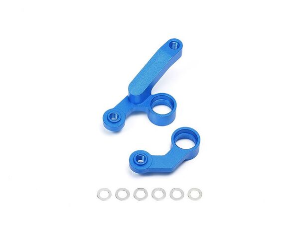 Sharpen up the Tamiya M-08 Concept’s steering with these aluminum steering arms. The aluminum material offers more precise motion which leads to a direct steering feel compared to the plastic steering parts in the kit. Furthermore, aluminum parts offer extremely secure attachment.