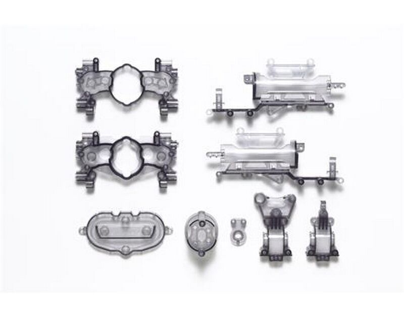 These are color variation parts that can be used for the SW-01 chassis. Molded in light gray tinted transparent plastic, they will go well with a whole range of different liveries and color schemes.