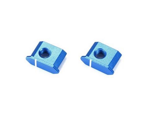 The brand-new suspension arm design in the TRF420 chassis use aluminum bushing inserts to allow quick, minute adjustment of damper attachment position and leverage ratio (i.e. the angle of the shock damper). This part is the B bushings, which can be used as a Hop-Up Option. Attachment only requires removal of the ball connector and grub screw, saving valuable time during set up changes.