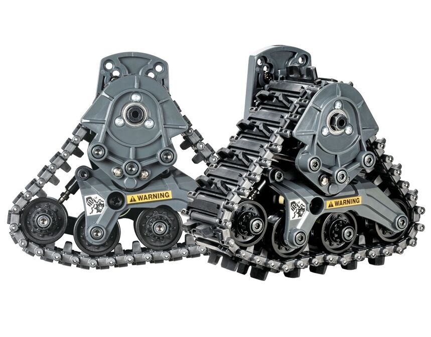 • Each track unit is composed of an upper drive sprocket connected to the chassis drive shaft to transfer power and eight individual rollers, enveloped by assembly plastic link-type tracks with soft inserts, that are connected by metal link pins.