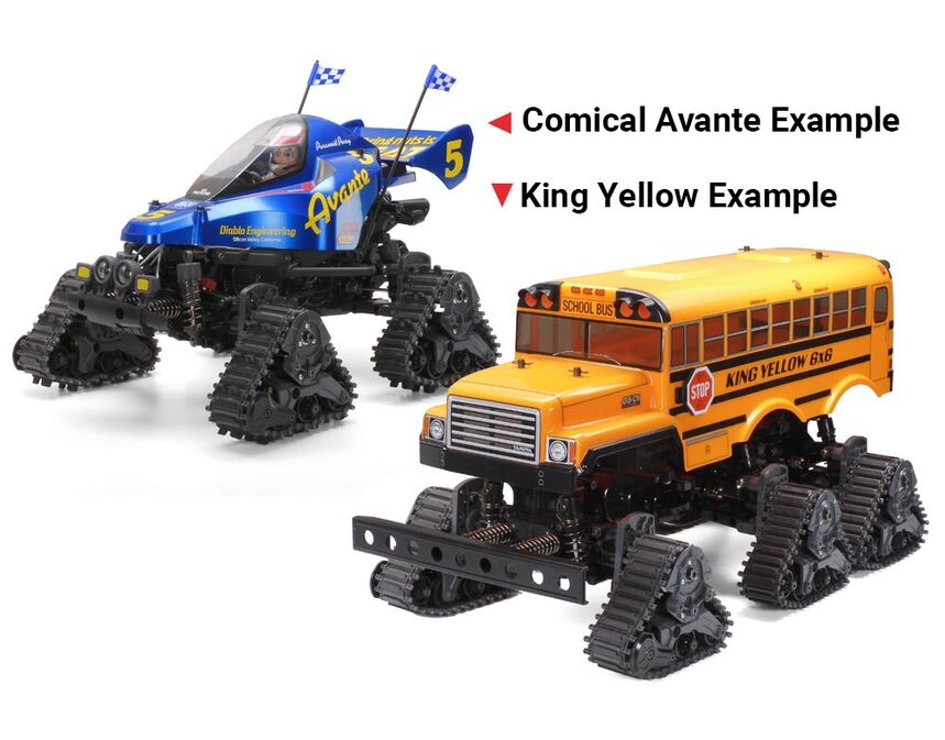 • These 3-sided track units can be used in place of the wheels on various Tamiya chassis platforms.
