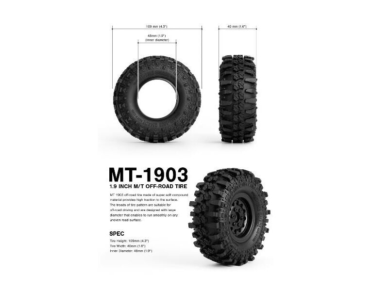 Realistic NR01 1.9" beadlock wheels made from high strength plastic