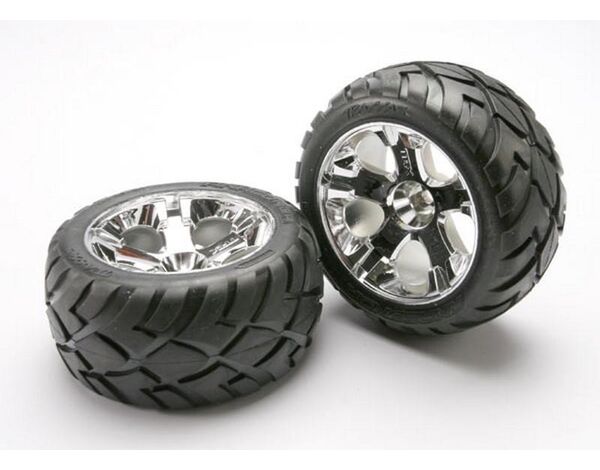 5577R Traxxas Wheels Assembled (All-Star Chrome Wheels Anaconda foam inserts) (nitro Front) (1 Left 1 right)