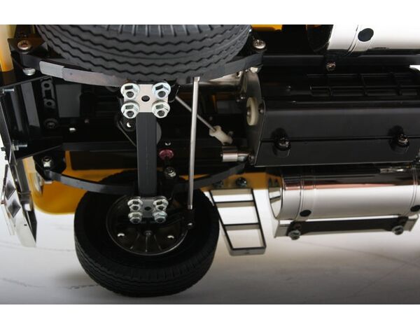 Der Globeliner bietet Modellbau nach dem neuesten Stand der Technik. Die Hinterachsen sind über Kardanwellen angetrieben und verfügen über ein servogesteuertes 3-Gang-Getriebe.