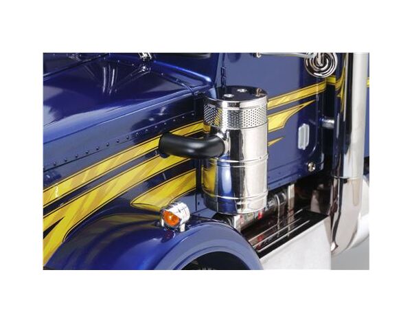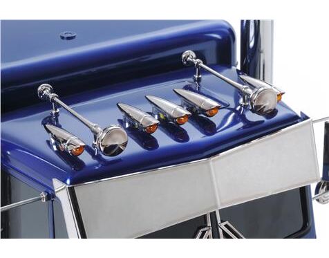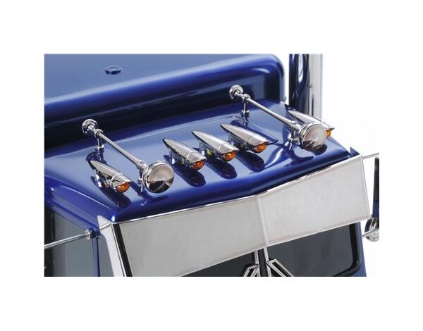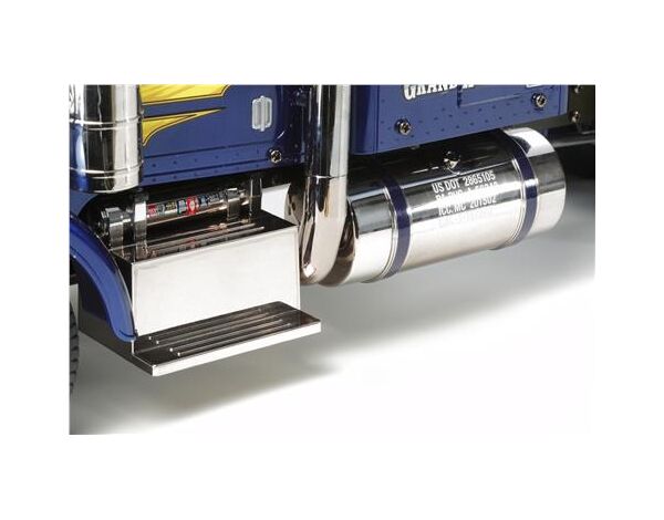 Dazu wurde die Kabine mit ihren Anbauteilen überarbeitet, das Fahrgestell auf eine Gesamtlänge von 692mm gestrecht. Das imposante Erscheinungsbild wird noch durch zwei baumdicke Auspuffrohre sowie ein neu designtes Custom-Decalsheet gekrönt um dem chromblitzenden Supertruck ein noch nie dagewesenes Finish zu verleihen. Erstmalig ist dem Truck sogar eine Fahrerfigur gegönnt, welche individuell bemalt und am Steuer platziert werden kann.
