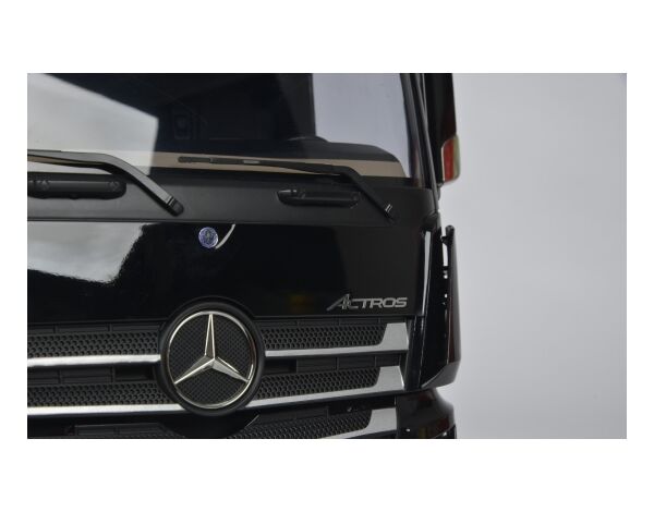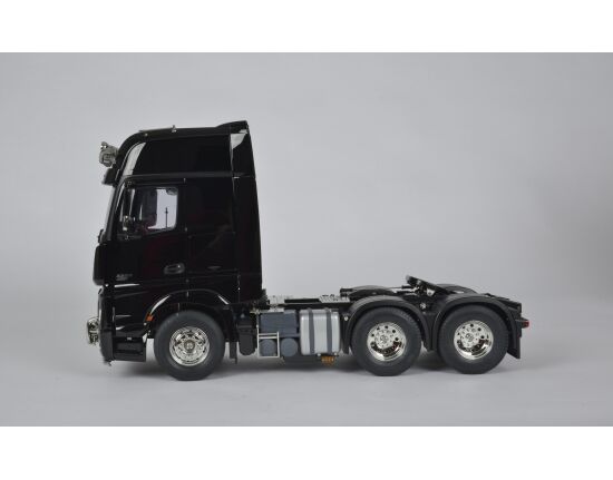 Der neuste Mercedes-Benz Actros 3363 6x4 GigaSpace darf zu Recht als König der Landstrasse bezeichnet werden. Mit Motoren bis zu 630PS und 3000Nm Drehmoment ist die Zugmaschine theoretisch fähig, bis zu 250Tonnen Last zu ziehen. Die luxuriöse Kabine in der GigaSpace Variante ist das grösste lieferbare Fernverkehr-Fahrerhaus der Actros-Reihe und wurde beim vorliegenden Modell akribisch genau umgesetzt. Die zusätzliche Fahrzeugbeleuchtung verleiht der aggressiven Front dabei einen standesgemässen Auftritt. Wie beim Original sind beide Hinterachsen angetrieben, die Motorkraft wird beim Modell wie gewohnt über das bewährte 3-Ganggetriebe in Zugkraft umgesetzt. Das Ergebnis ist ein echter Truck der Superlative !