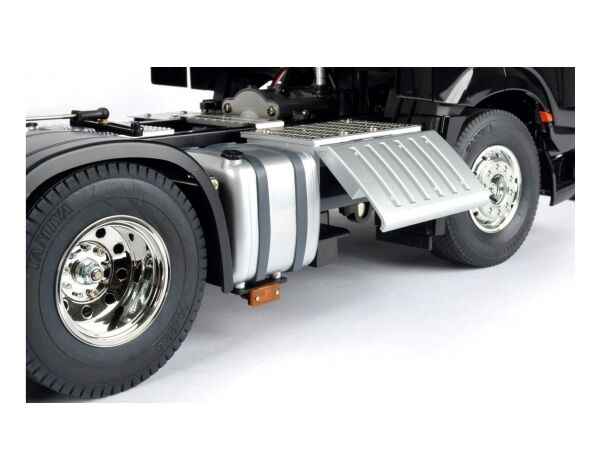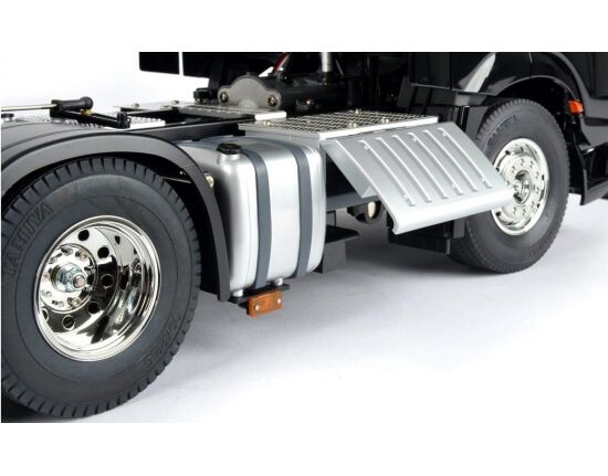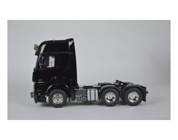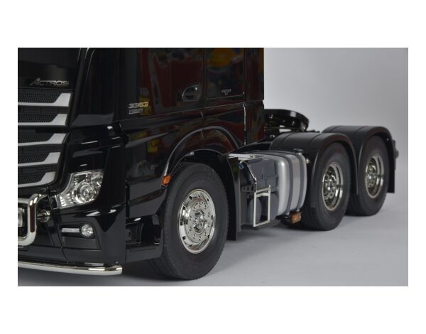 Der Mercedes Benz 3363 ist die 3-Achs Version des beliebten Actros. Dieser LKW beinhaltet zahlreiche neu designten Zurüstteile bereits serienmäßig. So verfügt der Bausatz erstmalig einen verchromten Dachlampenbügel, verchromten Lampenbügel an der vorderen Stoßstange, überarbeitetes Kühlergrill sowie Fotoätzteile an der Rahmenabdeckung. Highlight ist auch die neu gestaltete Tank und Druckluftanlage an den Seitenteilen des LKW´s. Das Modell besitzt ein 3-Gang Schaltgetriebe welches die beiden hinteren Achsen permanent antreibt. Optional wird für den Betrieb die TAMIYA Multifunktionseinheit MFC-03 (56523) empfohlen.
