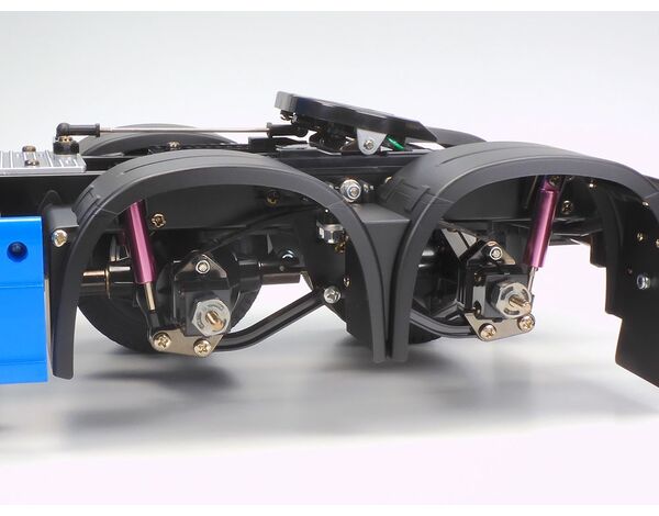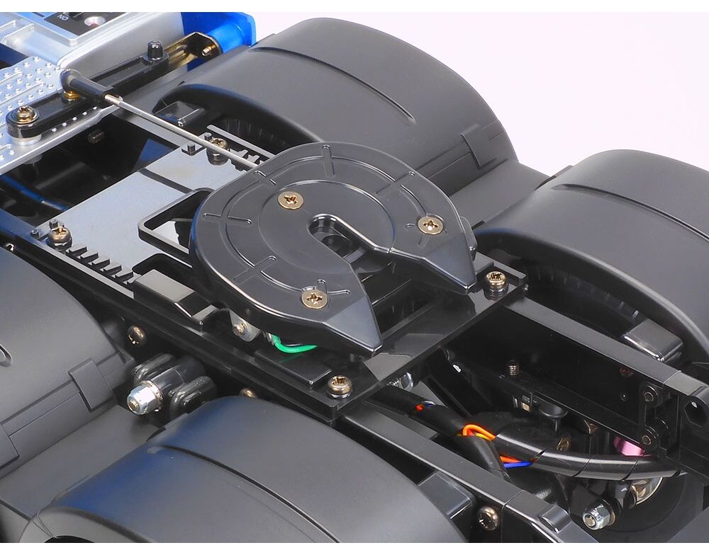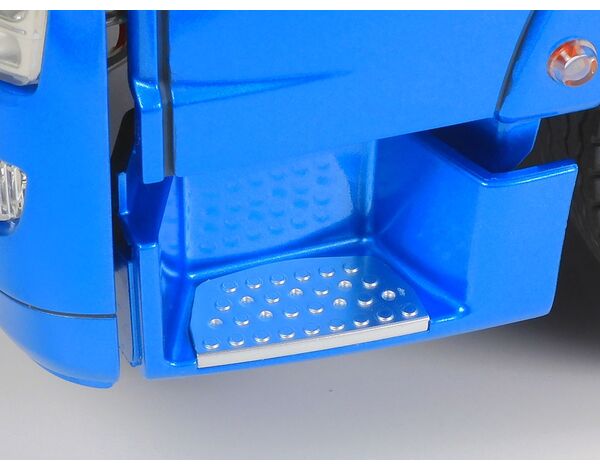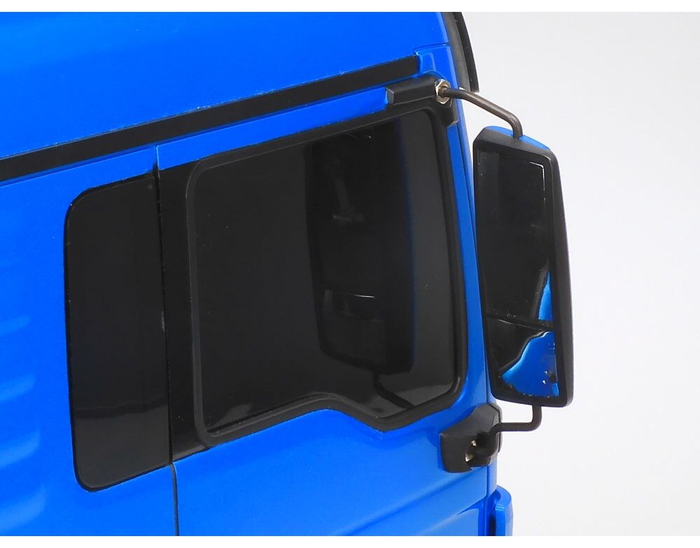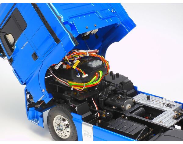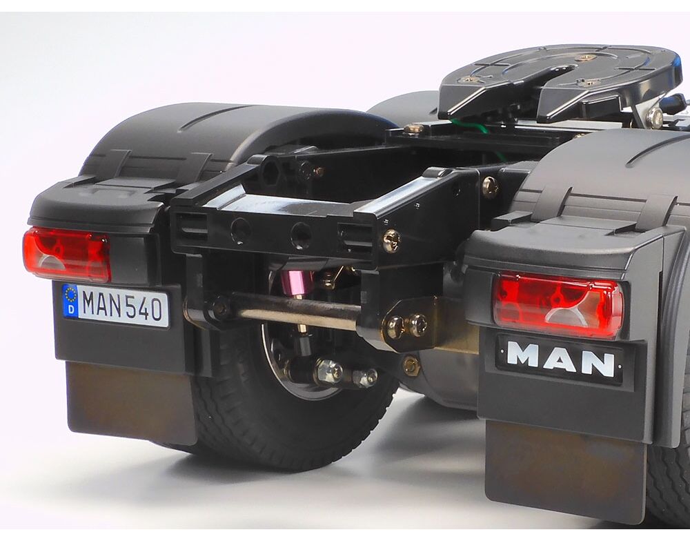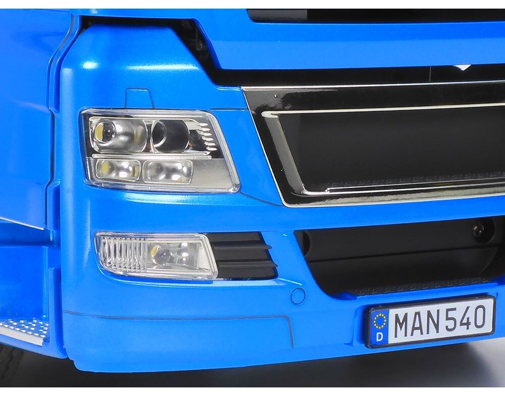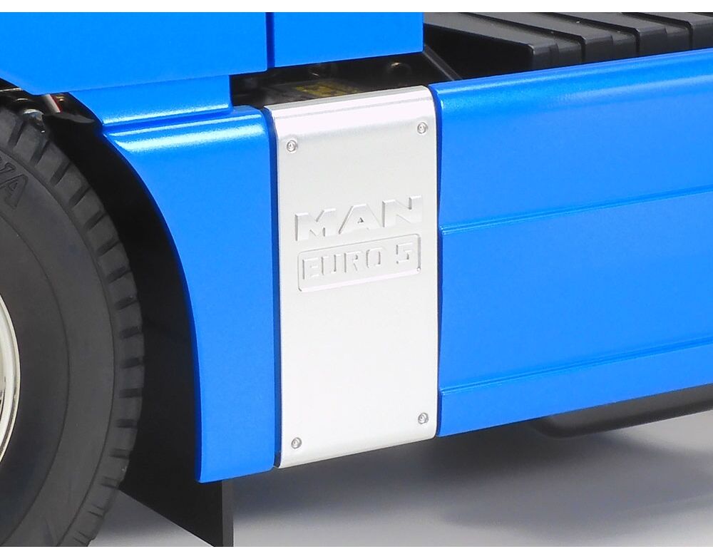 TAMIYA erweitert mit dem Facelift des MAN TGX 26.540 in der Euro 5 Version 2013 seine RC LKW-Serie um eine weitere deutsche 3-Achs-Zugmaschine. Auffällig ist der neue Kühlergrill mit dem großen MAN-Logo. Mit dem 526 mm langen und rund 3 kg schweren Bausatzmodell des 2013er MAN-Trucks, der 2008 zum Truck des Jahres wurde, lassen sich beeindruckende Gespanne zusammenstellen. Unter dem nach vorne kippbaren Fahrerhaus findet sich die bewährte und robuste Tamiya-Trucktechnik. Ein kräftiger Elektromotor gibt über ein schaltbares 3-Gang-Schaltgetriebe seine Kraft an die beiden Hinterachsen ab. Ein detailgetreuer Aluminium-Leiterrahmen verleiht dem Modell die erforderliche Stabilität. Dank seines hohen Eigengewichts und einer Sattelplatte lässt sich der MAN TGX 26.540 mit zahlreichen TAMIYA und CARSON-MODEL SPORT Aufliegern koppeln. Mit der optional erhältlichen Multifunktionseinheit können nahezu alle Sound- und Lichtfunktionen des Vorbildes simuliert werden.