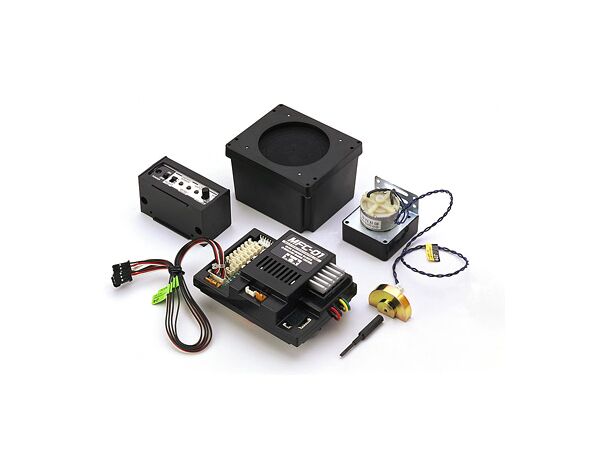 Multifunktionseinheit (Fahrregler und Steuermodul), Regelmodul (Modi-Wahl, Lautstärkeregler, Lichtfunktionswahl, Ein-/Ausschalter), LEDs, Kabel, Vibrationsmodul, Lautsprecher, Resonanzkörper, ausführliche Funktions- und Bedienungsanleitung