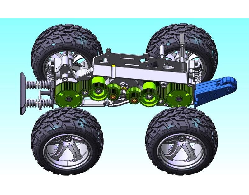This is the NEW GF-01 chassis platform. The first model to be featured on the chassis is a pick-up version of the Toyota Land Cruiser 40, a world-famous off-road vehicle that needs little introduction. It was produced for almost 25 years and much loved for its durability and adaptability. The GF-01 chassis plays off the successful and fun line-up of RC kits such as the Wild Willy 2, Volkswagen Type 2 and the Farm King Wheelie. Whereas those kits featured a 2WD and easy to wheelie platform, the new GF-01 is a 4WD incarnation with the motor directly placed in the center in order to drive the gears in the front and rear gearboxes.