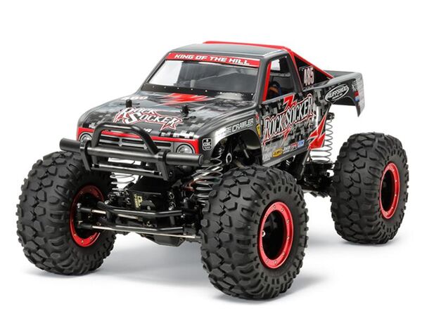 TAMIYAs Rock Socker hat als Karosserie eine TAMIYA-Legende, Kenner erinnern sich sofort an den Stadium Blitzer. Der Bausatz des „King of the Hill“ ist auf dem CR-01 Trial-Chassis aufgebaut. Die robuste Karosserie verleiht dem Modell den Look der typischen US-Rock Crawler. Dank des extrem verdrehfreudigen Fahrwerks und seiner extrem griffigen Crawlerreifen mit Beadlock-Ringen bezwingt der TAMIYA Rock Socker nahezu jedes Hindernis.
