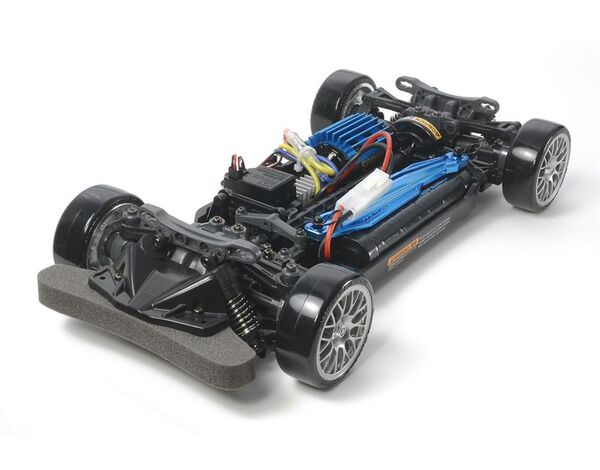 Nun präsentiert TAMIYA den Flitzer als Drift-Modell auf Basis des TT-02D Chassis. Die Karosserie stammt vom Nissan GT-R 58411 Bausatz. Eine LED-Unit ist im Lieferumfang bereits enthalten, für den Vortrieb sorgt der kräftige Sport Tuned Typ 540 Motor. Dank Kugellagern und Oeldruckdämpfern wird der Über-Nissan hiermit zur echten Drift-Rakete.