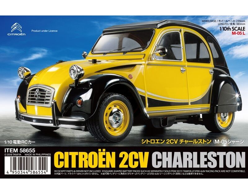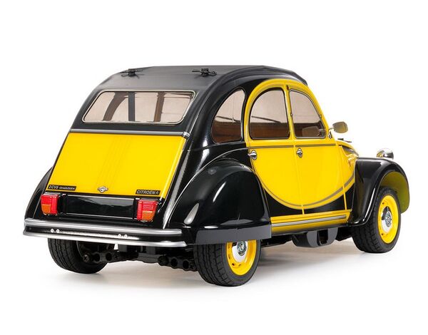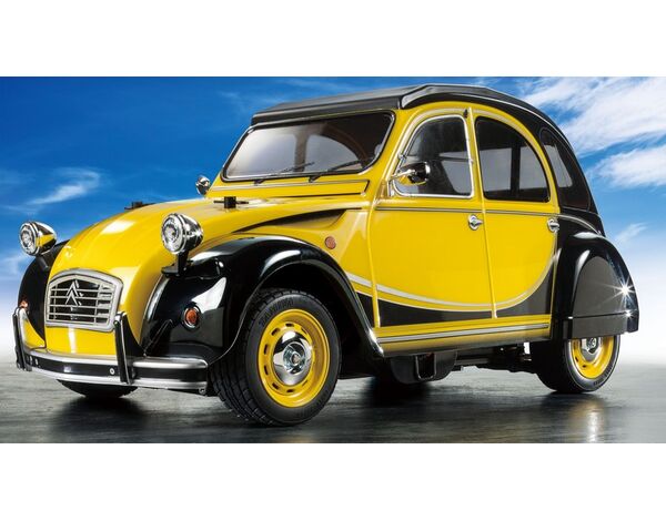 Citroen 2 CV, der französische Klassiker schlechthin. Das neueste M-Chassis Fahrzeug von Tamiya. Besonders hübsch in der legendären "Charleston" Ausführung. Von der legendären "Ente" wurden von 1949 bis1990 über 3,8 Millionen Limousinen und ca. 1,2 Millionen Lieferwägen gebaut. Anfangs von der Fachpresse belächelt, entwickelte sich der 2CV zum absoluten Bestseller.