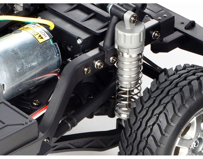 - Der Leiterrahmen des CC-02-Chassis wurde für eine Vielzahl von Geländetypen einschliesslich felsiger Oberflächen entwickelt und ist von Fahrzeugen in Originalgrösse inspiriert und bildet die Grundlage für seine überlegene Langlebigkeit.