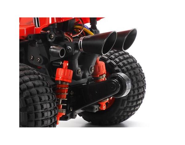 Verbinden diese Modelle doch die coole Optik der glorreichen 80er Jahre Tamiya Buggies mit der modernen Wheelie Technik von heute.