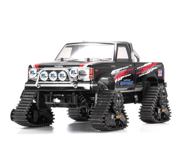 Der Quadtrack ist das erste 1:10 Modell von TAMIYA, welches über einen Kettenantrieb verfügt. Bekannt ist diese Antriebsart von Arktis Expeditionsfahrzeugen. Jetzt kombiniert TAMIYA diesen Antrieb mit dem beliebten Landfreeder. Dafür wurde das robuste TT-02 Chassis umgebaut. Anstatt den Rädern besitzt er nun Kettenantriebe. Die Ketten haben eine viel größere Aufstandsfläche als Räder und haben somit mehr Traktion. Das Modell hat weiterhin eine Polycarbonat Chassisabdeckung und Radkästen, um es vor Verschmutzungen zu schützen.