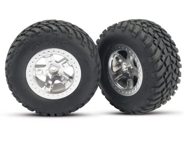 5873 Traxxas Wheels Assembled (SCTsatin Chrome Wheels (dual profile 2.2 outer 3.0 Inner) SCT off-road racing foam inserts) (2) (Rear)
