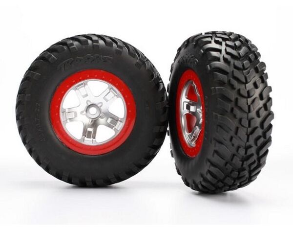 5873R Traxxas Wheels Assembled (SCT satin Chrome Red beadlock Wheels ultra soft S1 compound off-road racing inserts) (2) (2WD Rear 4WD fr)