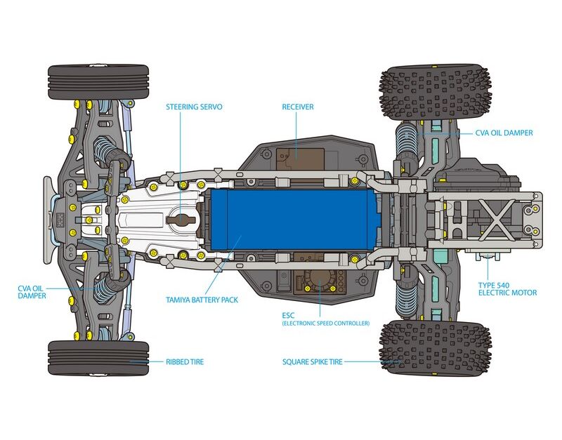 Ein weiteres Highlight des Tamiya DT-04 ist seine Vielseitigkeit. Das Modell wurde mit einer breiten Auswahl an Ersatzteilen und Zubehör entwickelt, was es den Nutzern ermöglicht, den Buggy ganz nach ihren eigenen Bedürfnissen anzupassen. Ob für Offroad-Rennen, Hobbyfahrten oder den professionellen Einsatz – der DT-04 bietet genügend Potenzial, um auf verschiedene Anforderungen abgestimmt zu werden. Darüber hinaus unterstützt der DT-04 eine Vielzahl von Motoren und Elektronikkomponenten, sodass der Buggy sowohl mit bürstenlosen als auch mit Bürstenmotoren betrieben werden kann. Dies ermöglicht es dem Fahrer, die Leistung des Fahrzeugs nach eigenen Vorlieben zu optimieren, sei es für Geschwindigkeit oder Ausdauer.