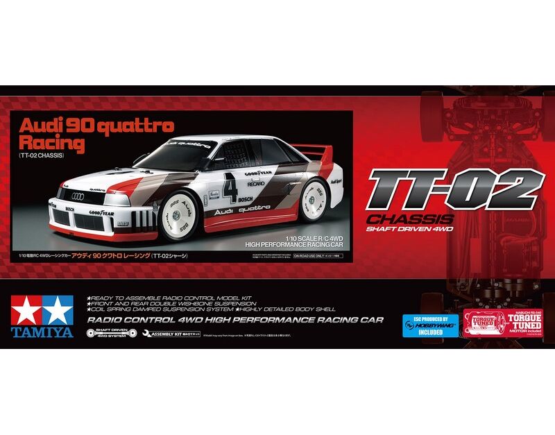 58744 Tamiya 1/10 RC Audi 90 quattro Racing (TT02) Tourenwagen Baukasten inkl. Motor und Fahrtenregler