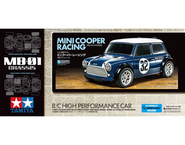 58747 Tamiya 1/10 RC Mini Cooper Racing (MB01) Baukasten inkl. Motor und Fahrtenregler